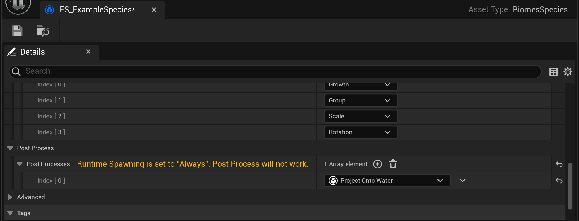 - We added a warning when using runtime-spawned Species with a post-processing Blueprint as post-processing is only available for offline-spawned Species currently.